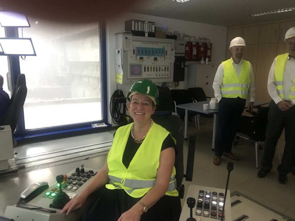 Am Dienstag besuchte Umweltministerin Prof. Dr. Claudia Dalbert die Müllverbrennungsanlage TREA Leuna. Dort wurden zukunftsweisende Gespräche über Phosphor-Recycling mit Klärschlamm-Monobehandlung, Bioabfallvergärung und Fernwärme geführt. Die Ministerin durfte sogar im Kranführerstand Probesitzen!