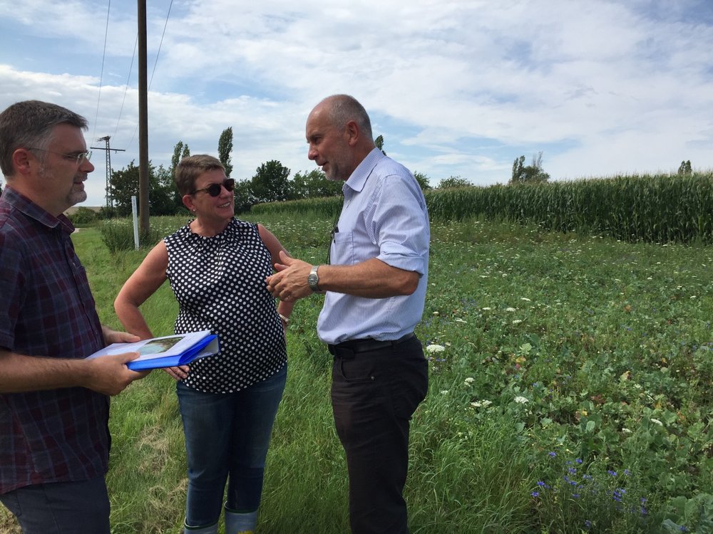 Claudia Dalbert besuchte das Demonstrationsprojekt F.R.A.N.Z bei der Landwirtschaftlichen Betriebsgemeinschaft Groß Germersleben (GbR). Es ist eines von 10 Demonstrationsvorhaben bundesweit. Dalbert erklärte dazu: „Hier werden in einem konventionell wirtschaftenden Betrieb neue Wege zum Schutz der Artenvielfalt in der Agrarlandschaft gegangen. Die Landwirte wollen ihrer Verantwortung für den Erhalt der biologischen Vielfalt gerecht werden. Ich habe mich gefreut, mir vor Ort von den Landwirten zeigen zu lassen, mit welchen Maßnahmen sie unsere heimischen Tiere und Pflanzen schützen.“