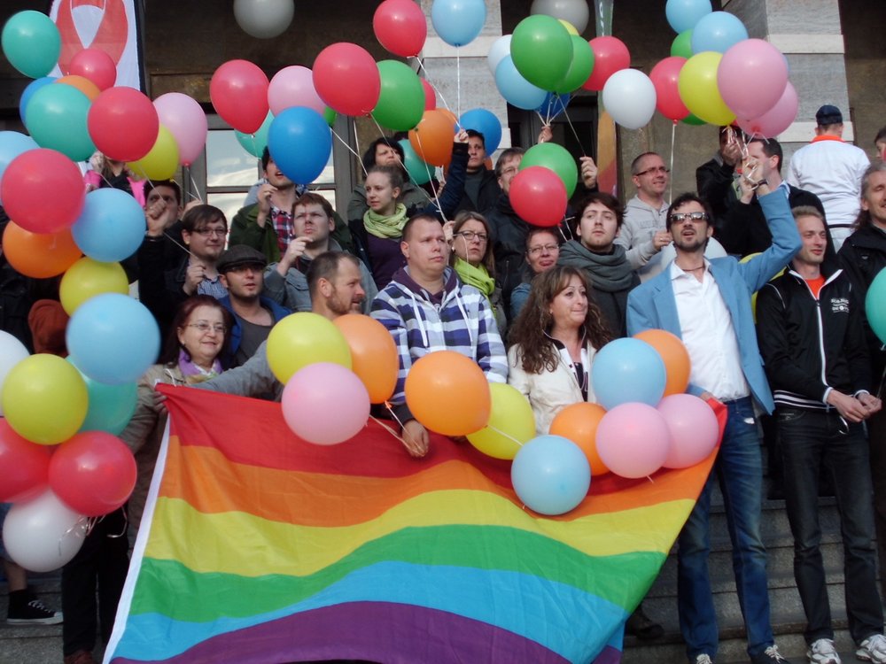 In Halle fand am Mittwoch ein RainbowFlash statt. Punkt 19 Uhr flogen auf dem Marktplatz in Halle Luftballons mit Botschaften gegen Homophobie in den Himmel.