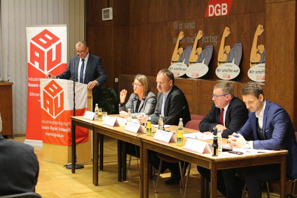 Im „Haus der Gewerkschaften“ in Magdeburg lud der Bezirksbeirat der IG Bauen-Agrar-Umwelt innerhalb einer Tagung zu einer Podiumsdiskussion ein. Spitzenkandidatinnen und Kandidaten für die diesjährige Landtagswahl hatten die Möglichkeit das jeweilige Wahlprogramm und ihre Standpunkte vorzustellen. Natürlich nahm Claudia Dalbert für BÜNDNIS 90/DIE GRÜNEN diese Möglichkeit war.