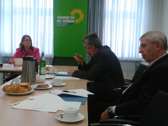 Um sich ein umfassendes Bild über die Problemlage im Bereich der Hochschulkooperationen mit Unternehmen zu machen, lud Claudia Dalbert gestern zu einem Fachgespräch "Hochschulkooperationen" in den Landtag ein. Mit dem Vorsitzenden der Landesrektorenkonferenz Herrn Prof. Dr. Willingmann, dem Rektors der Otto-von-Guericke-Universität, Herrn Prof. Dr. Pollmann, dem Gewerkschaftssekretär für Bildung, Herrn Prof. Dr. Hans-Dieter Klein (Gewerkschaft Erziehung und Wissenschaft Sachsen-Anhalt) sowie Herrn Tom Assmann von der Grünen Hochschulgruppe Magdeburg fand ein reger Austausch zum Thema statt. Einig waren sich die Teilnehmer darin, dass in Sachen Transparenz hier in Sachsen-Anhalt noch einiges zu tun ist.