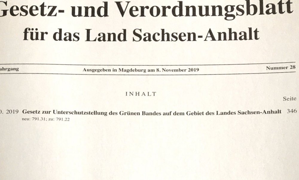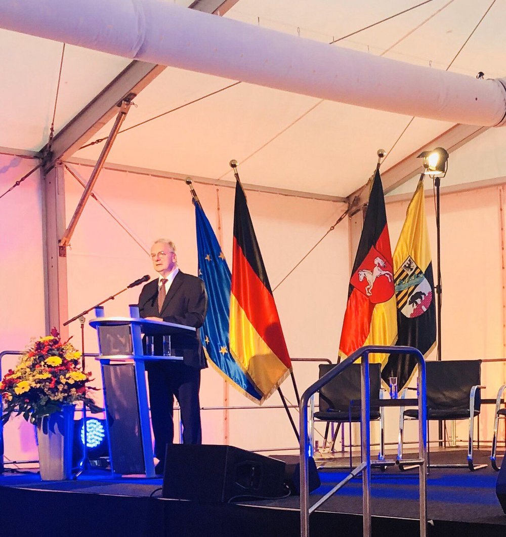 Ministerpräsident Reiner Haselhoff würdigte bei der Festveranstaltung anlässlich 30 Jahre Mauerfall das ab heute, den 9. November 2019, geltende Grüne-Band-Gesetz als wichtiges Zeichen Sachsen-Anhalts und dankte allen, die dies möglich gemacht haben.