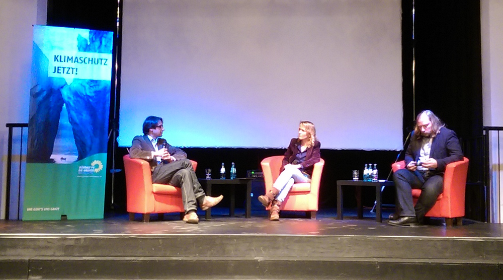 Am Montagabend war Dr. Anton Hofreiter, Voristzender der Bundestagsfraktion von BÜNDNIS 90/DIE GRÜNEN, mit der Klimatour "Klimaschutz Jetzt!" und dem Film "Chasing Ice" zu Gast in Halle. mit eindrucksvollen Bildern dokumentiert der preisgekrönte Film „Chasing Ice“ den zunehmenden Gletscherschwund und zeigt, wie sich die globale Erwärmung bereits jetzt auf die Umwelt auswirkt. Das Verbrennen von Kohle, Gas und Öl erzeugt immer mehr klimaschädliches CO2, das die Erde weiter aufheizt. Welche ökologischen, sozialen und wirtschaftlichen Folgen drohen? Wie wirkt sich die Klimakrise auf Sachsen-Anhalt aus? Diese und andere Fragen wurden mit Toni Hofreiter und Dr. Andreas Marx vom Mitteldeutschen Klimabüro am Helmholtz-Zentrum für Umweltforschung GmbH und dem Publikum diskutiert. Steffi Lemke führte durch den Abend. Auch Claudia Dalbert war mit dabei.