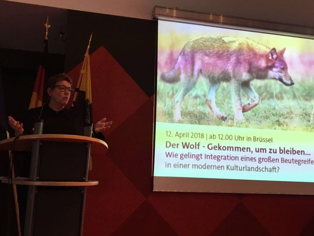 In der Landesvertretung Sachsen-Anhalts in Brüssel fand die Veranstaltung „Der Wolf: Gekommen, um zu bleiben. Wie gelingt die Integration des großen Beutegreifers in unserer modernen Kulturlandschaft?“ großes Interesse. Sachsen-Anhalts Landwirtschaftsministerin Prof. Dr. Claudia Dalbert, Krzysztof Główczyński, Direktor des Welski Naturparkes Lidzbark in Ermland-Masuren, Dr. Elsa Nickel, Referatsleiterin im Bundesministerium für Umwelt, Naturschutz und nukleare Sicherheit, Nicola Notaro, Referatsleiter „Naturschutz“ der Generaldirektion Umwelt der Europäischen Kommission und Swen Keller, Schäfer und Ausbilder von Herdenschutzhunden aus Sachsen-Anhalt gaben aus unterschiedlichen Perspektiven Antworten auf die Frage, wie das Ziel einer Akzeptanz des Wolfes im ländlichen Raum erreicht werden kann. Anschließend wurde sehr rege mit dem internationalen Publikum diskutiert.