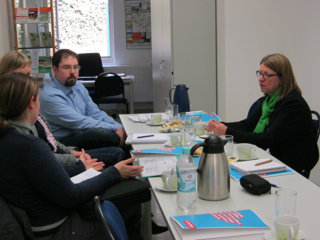 Am Nachmittag kamen Claudia Dalbert und Stefan Persich, Leiter der Netzwerkstelle "Schulerfolg sichern!" (in Trägerschaft des Christlichen Jugenddorfwerk Deutschland e.V. - CJD), zu einem gemeinsamen Gespräch in Weißenfels zusammen. Es ging um die Situation der Schulsozialarbeit im Land im Allgemeinen und im Burgenlandkreis im Speziellen.