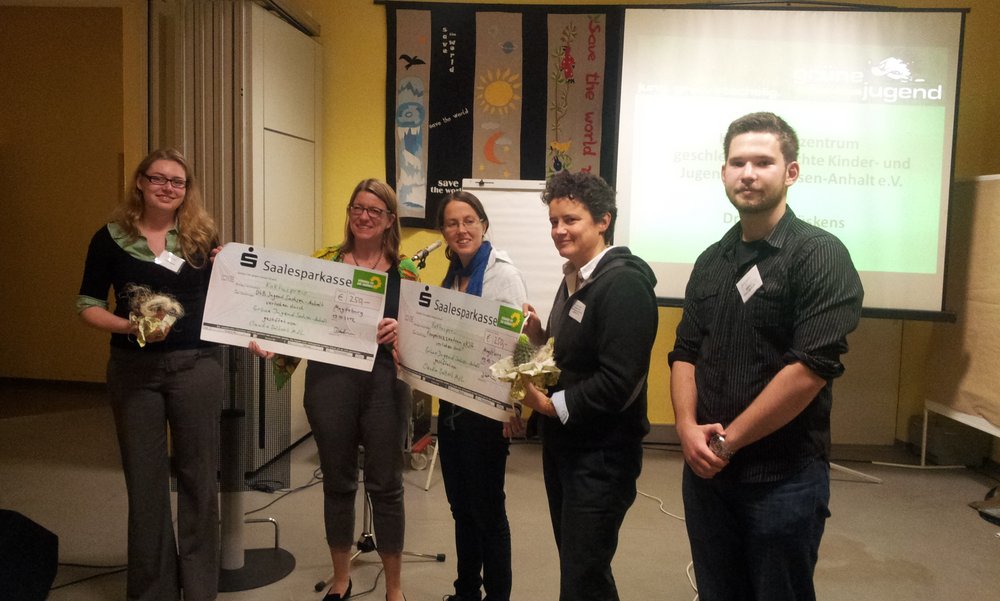 Am Freitagabend kamen im Eine-Welt-Haus in Magdeburg Aktive aus der Kinder- und Jugendhilfe, der Politik und den Gewerkschaften zusammen, um der Vergabe des von der GRÜNEN JUGEND Sachsen-Anhalt ausgeschriebenen Preises beizuwohnen. Ausgezeichnet wurde zum einen die DGB Jugend für den von ihren Freiwilligen angebotenen „Tag für Demokratie und Mitbestimmung“, der nach Bedarf an Berufsschulen in Sachsen-Anhalt durchgeführt wird. Die Landesjugendsekretärin Katja Holtz nahm den Preis stellvertretend für die DGB Jugend entgegen. Die zweite Hälfte des Preises erhielt das Kompetenzzentrum geschlechtergerechte Kinder- und Jugendhilfe Sachsen-Anhalt e.V. für ihre ausgewöhnliche Arbeit zur Stärkung der geschlechtergerechten Partizipation für Kinder- und Jugendliche in unserer Gesellschaft. Die Vorsitzende des Vereinsvorstandes Dr. Lydia Hüskens nahm den Preis in Vertretung entgegen. Der „Kaktus“ ist mit insgesamt 500 Euro dotiert, von denen nun beide GewinnerInnen je 250 Euro erhalten.