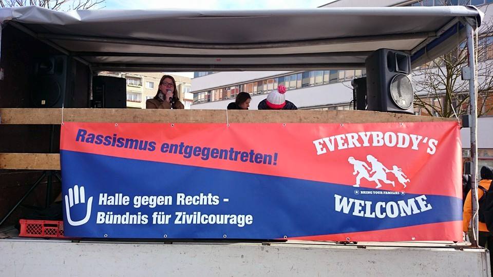 Claudia sprach auf der Kundgebeung, das vom "Bündnis gegen Rechts" organisiert wurde. "Jede Familie hat Geschichten von Zu- und Abwanderung. Wo kommen Ihre Großeltern her? Reichen wir jenen Menschen, die in Sachsen Anhalt leben wollen, die Hand."