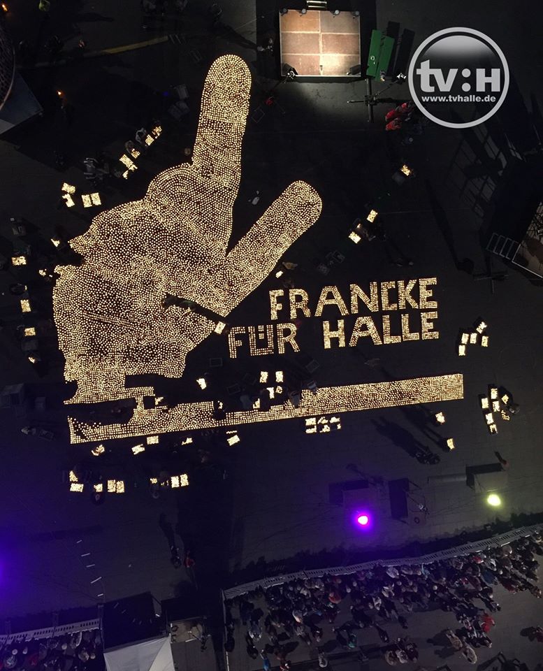 Wieder einmal gab es ein tolles Leuchtspektakel beim Lichterfest in Halle. Aus rund 17.000 Teelichtern wurde die Francke-Geste gebildet.