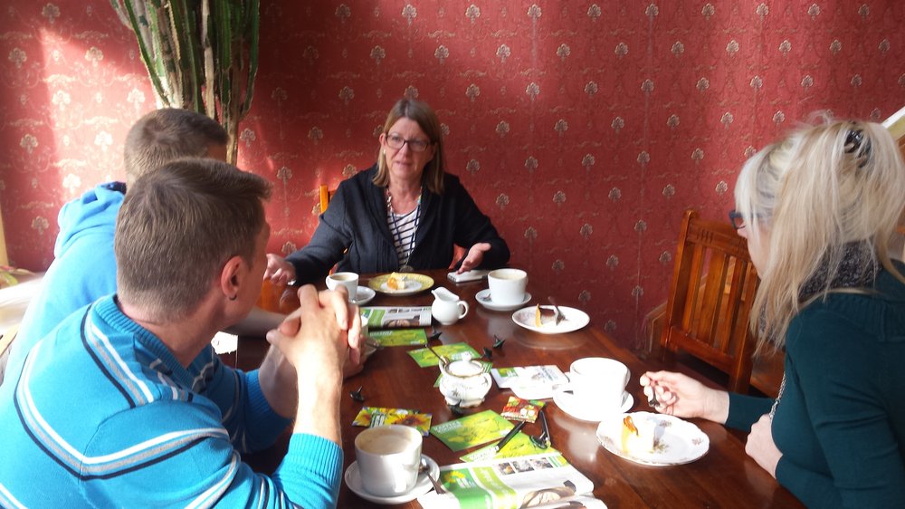 Mit interessierten BürgerInnen bei Kaffee und Kuchen sich unterhalten und über Landespolitik informieren. Das macht Spaß! Wie immer im Kaufmann´s Laden.