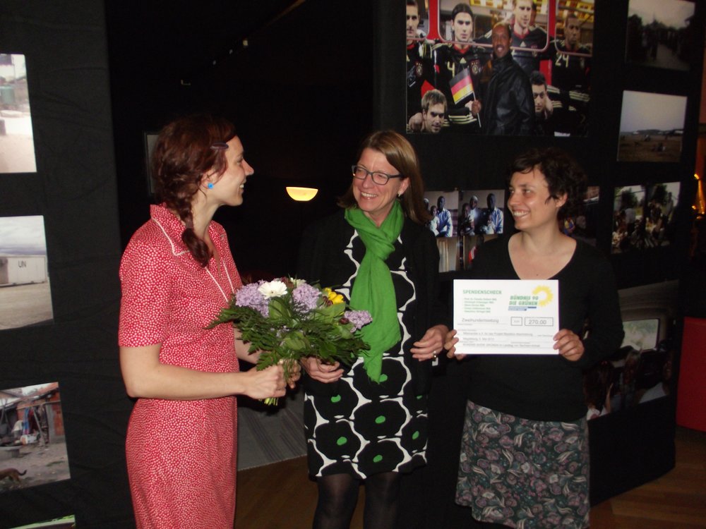 Die grünen Landtagsabgeordneten Claudia Dalbert, Christoph Erdmenger, Conny Lüddemann, Sören Herbst und Sebastian Striegel unterstützen, durch einen Scheck in Höhe von 270 Euro, mit Spenden das Projekt „Blackbox Abschiebung“, eine Installation, die die aktuelle Asylpolitik der Europäischen Union anhand menschlicher Schicksale thematisiert.