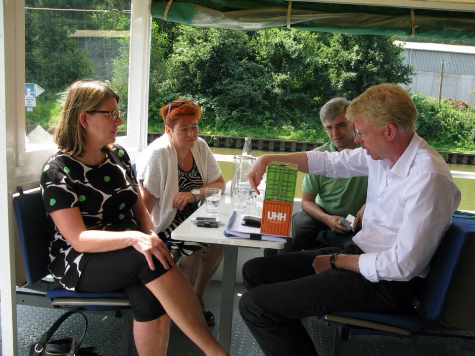 Am 22.07.2014 begann die Grüne Sommertour zum Thema "Wasser - Voll mein Element" in Haldensleben. Den Auftakt hierbei bildeten am Morgen der Besuch der Wasserschutzpolizei sowie die Besichtigung der Börde Container Feeder GmbH und ein interessantes Gespräch mit deren Geschäftsführer Herrn Hergen Hanke.