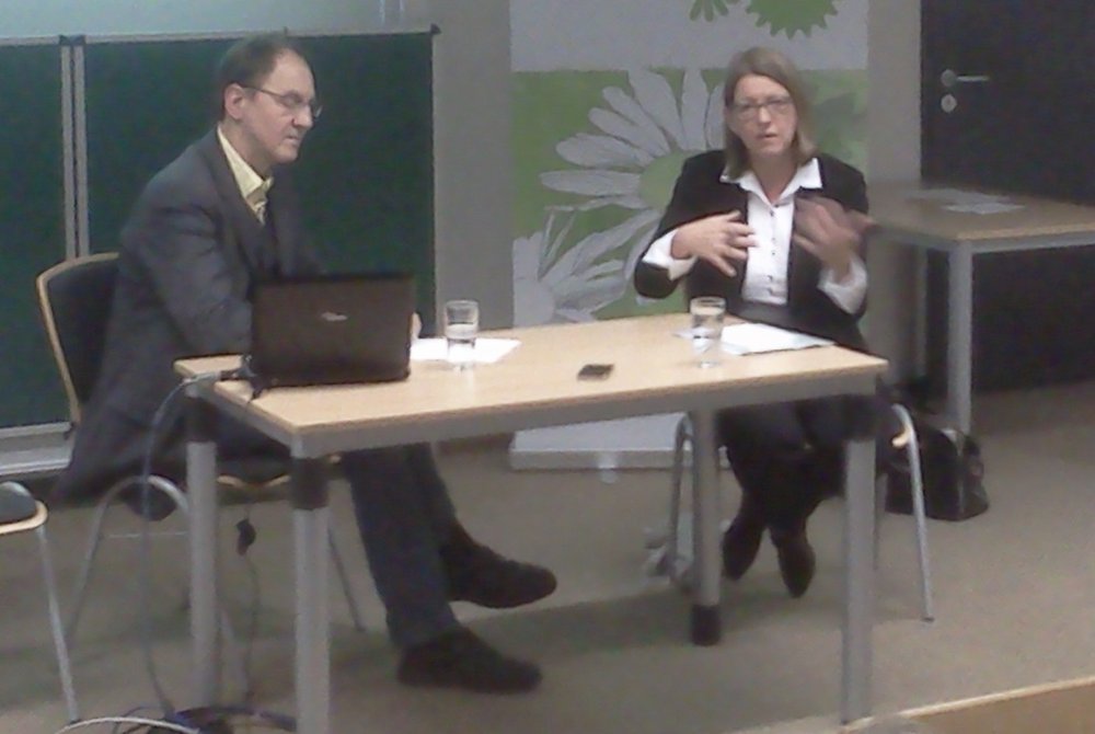 Am Dienstag fand in der Volkshochschule in Dessau die letzte Veranstaltung aus der Reihe "Welche Wirtschaft wollen wir?" der Heinrich-Böll-Stiftung Sachsen-Anhalt statt. Unter dem Titel "Leben und Arbeiten in gesicherter Existenz" waren Claudia Dalbert als Fraktionsvorsitzende der GRÜNEN im Landtag und Michael Opielka, Professor für Sozialpolitik an der FH Jena eingeladen um mit dem Publikum zu diskutieren. Nach einem einführenden Vortrag von Herrn Opialka gab es interessante Kontroversen zu verschieden Aspekten sozialer Nachhaltigkeit, der Würde von Meschen und bedingungslosem Grundeinkommen als Kampf gegen Armut.