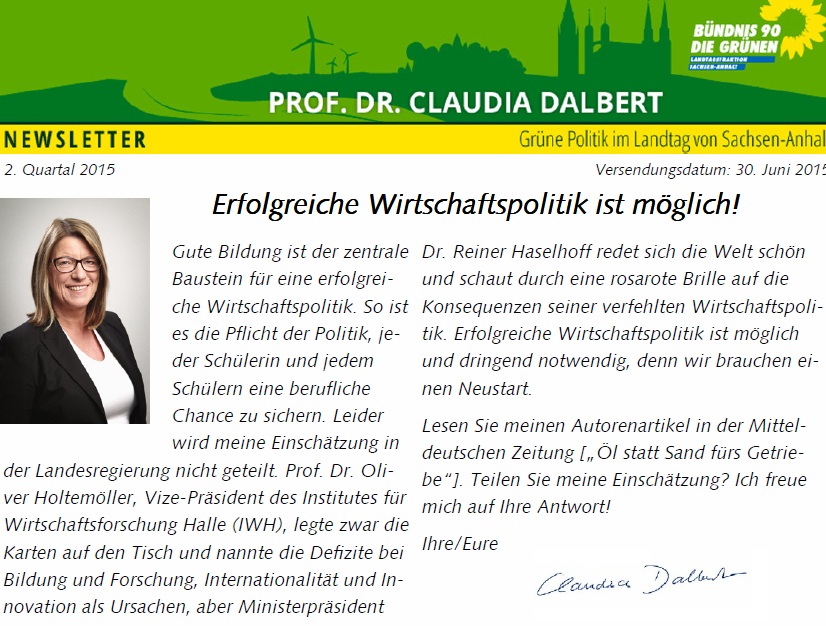 Gute Bildung ist der zentrale Baustein für eine erfolgreiche Wirtschaftspolitik. So ist es die Pflicht der Politik, jeder Schülerin und jedem Schülern eine berufliche Chance zu sichern. Leider wird meine Einschätzung in der Landesregierung nicht geteilt. Prof. Dr. Oliver Holtemöller, Vize-Präsident des Institutes für Wirtschaftsforschung Halle (IWH), legte zwar die Karten auf den Tisch und nannte die Defizite bei Bildung und Forschung, Internationalität und Innovation als Ursachen, aber Ministerpräsident Dr. Reiner Haselhoff redet sich die Welt schön und schaut durch eine rosarote Brille auf die Konsequenzen seiner verfehlten Wirtschaftspolitik.