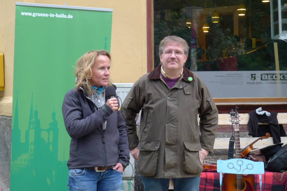 Claudia Dalbert war am Mittwoch beim Wahlkampfhöhepunkt von Landes- und Stadtverband in Halle dabei. Nach den Reden von Direktkandidat Dr. Sebastian Kranich und der Spitzenkandidatin Steffi Lemke, war noch Zeit für anregende Gespräche und dem Genuß von Bio-Würstchen in geselliger Runde.