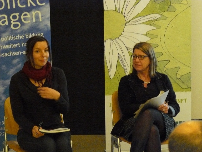 Unter dem Titel "Wege zum Wandel - Wie wir gesellschaftliche Veränderungen erfolgreicher gestalten können" diskutierten gestern Dr. Kora Kristof und Claudia Dalbert im Rahmen der Veranstaltungsreihe "Welche Wirtschaft wollen wir" der Heinrich-Böll-Stiftung im Bauhaus in Dessau. Etwa 20 Personen folgten der Einladung der Stiftung und belebten die Podiumsdiskussion mit interessanten Fragen und Anmerkungen zu der Frage wie es der Politik gelingen kann die Menschen mitzunehmen und wie Gesetzesänderungen in Sachsen-Anhalt die Möglichkeiten für Bürgerinnen und Bürger, sich einzumischen verbessern können.
