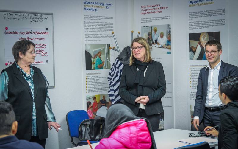 Los ging es mit einem spannenden Live-Interview bei TV Halle im MZ Verlagshaus, bei dem es um gute Jobs, Bildung, Geflüchtete und einen frischen Slogan für Sachsen-Anhalt ging. Danach besuchte Claudia Dalbert den Chemiestandort Leuna. Dort konnte sie sich von den beeindruckenden Ressourceneinsparungen InfraLeuna-Gesellschaft überzeugen, welche die Infrastruktur der chemischen und petrochemischen Industrie bereitstellt. Weiter gings zur Gemeinschaft der Direktvermarkter nach Naumburg, die regionale Vertriebswege für gutes Essen aus Region aufzeigen konnte. Am Nachmittag hatten Claudia Dalbert und Sebastian Striegel dann die Gelegenheit, einen ehrenamtlichen Deutschkurs für Geflüchtete zu besuchen. Dieser fand im Mehrgenerationenhaus Merseburg statt – einem wichtigen Begegnungsort in der Region. Am Abend ging es dann auf das Wahlforum der IHK Dessau-Halle, auf dem wirtschaftspolitische Themen für die Landtagswahl in Sachsen-Anhalt diskutiert wurden.