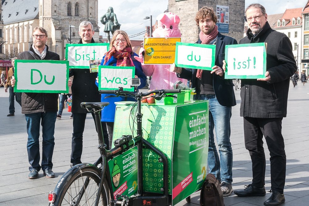 Mit einer Aktion auf dem Marktplatz von Halle machten die Fraktionsvorsitzenden Prof. Dr. Claudia Dalbert (Sachsen-Anhalt), Jürgen Suhr (Mecklenburg-Vorpommern), Volkmar Zschocke (Sachsen) und Dirk Adams (Thüringen) sowie der stellvertretende Fraktionsvorsitzende Stefan Gelbhaar (Berlin) in diesem Jahr auf einen der wichtigsten Grundsätze bündnisgrüner Verbraucherschutzpolitik aufmerksam. Gemeinsam verteilten sie Äpfel und Birnen aus regionalem Anbau. Dalbert: „Regional ist erste Wahl – das ist doch klar! Da weiß ich, wo mein Obst herkommt. Da weiß ich, wie es produziert wurde. Kurze Transportwege schonen zudem unsere Ressourcen.“