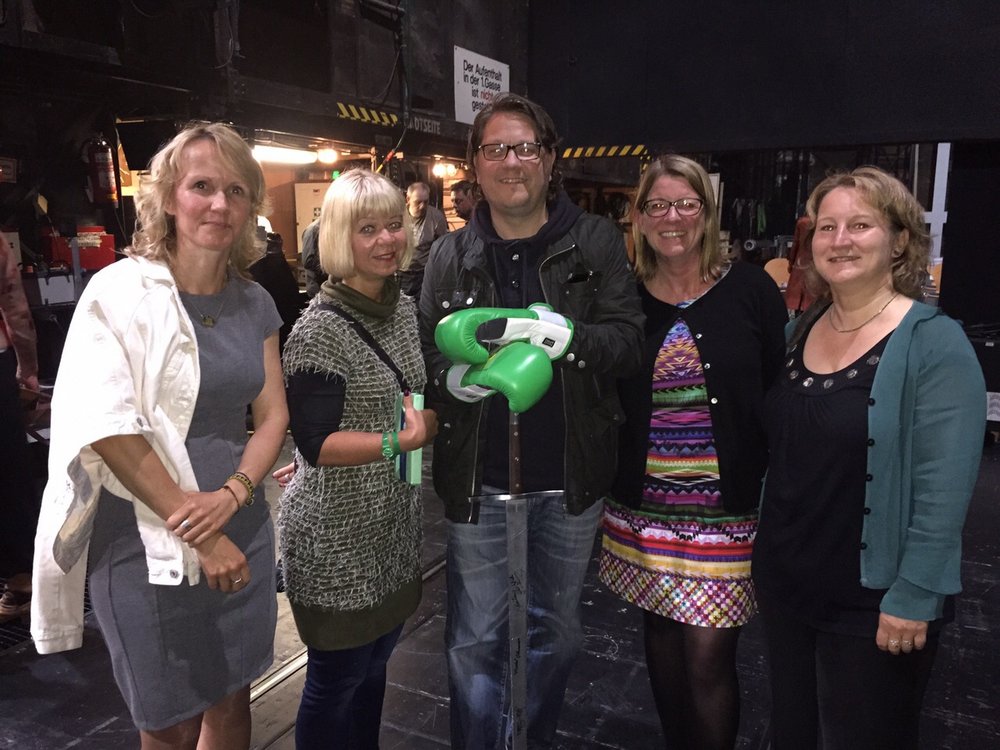 Am Samstagabend wurde das letzte Mal "Götz von Berlichingen" unter der Regie des Intendanten des Anhaltischen Theaters Dessau, André Bücker, aufgeführt. Prof. Dr. Claudia Dalbert nutze die Gelegenheit sich das Stück zusammen mit Steffi Lemke, Cornelia Lüddemann und Ines Oehme anzuschauen und anschließen André Bücker ein Abschiedsgeschenk zu überreichen: GRÜNE Boxhandschuhe.