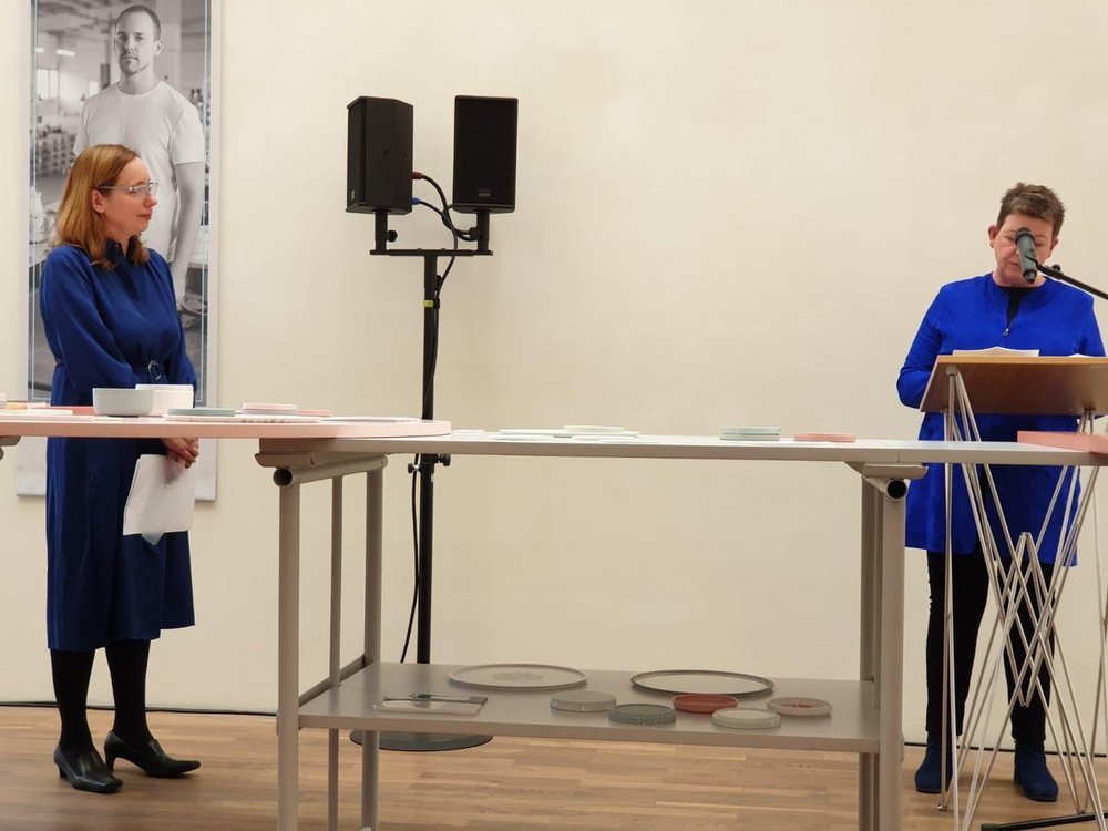 Sie sagte: "Ich durfte heute in der wunderbaren Kunststiftung zur Ausstellungseröffnung sprechen, Trends beim Essen kennenlernen und die Inszenierung der Speisen auf den inspirierenden Ergebnissen junger KünstlerInnen dank Kahla-Porzellan bewundern. Ich wünsche allen Beteiligten dieser Ausstellung viel Erfolg und den Gästen viele neue Erkenntnisse."