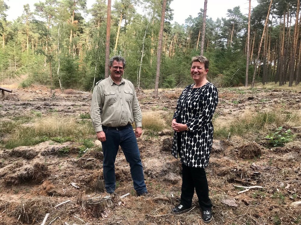 Claudia Dalbert war im Privatwald des Scharteucker Forst unterwegs. Dort gab es einen regen Austausch über Probleme, Schäden - vor allem in Zeiten der Dürreperiode - und Erfolge mit dem Besitzer und seiner Familie.