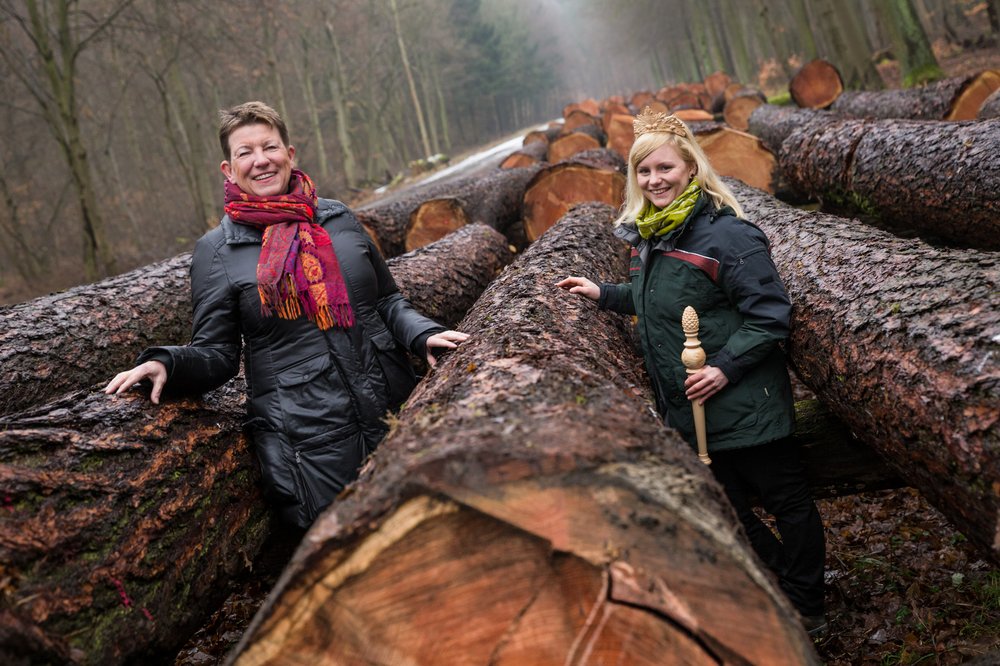 Umwelt- und Landwirtschaftsministerin Claudia Dalbert und Waldkönigin Maria Dolge waren auf dem auf dem Wertholzplatz in Bischofswald zu einem Wertholz-Submission-Pressetermin. In diesem Jahr wurden 2295 Festmeter und damit 700 Festmeter mehr als im Vorjahr veräußert. Dadurch wurde ein Rekord-Ergebnis von 940.000 Euro erzielt.
