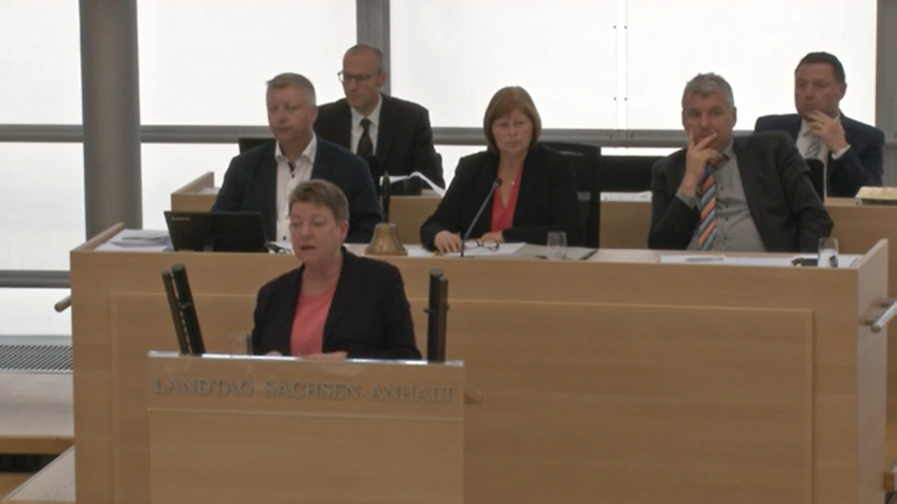 Im Landtag von Sachsen-Anhalt wurde über den sogenannten "Staubschutzwall" in Roitzsch (Anhalt-Bitterfeld) debattiert. Für die Landregierung redete Umweltministerin Claudia Dalbert. Der Landkreis habe die Räumung beantragt und auch ein Bußgeld auferlegt. Das Bußgeldverfahren ruhe allerdings zur Zeit, weil gegen den Betreiber eine Strafanzeige gestellt wurde.