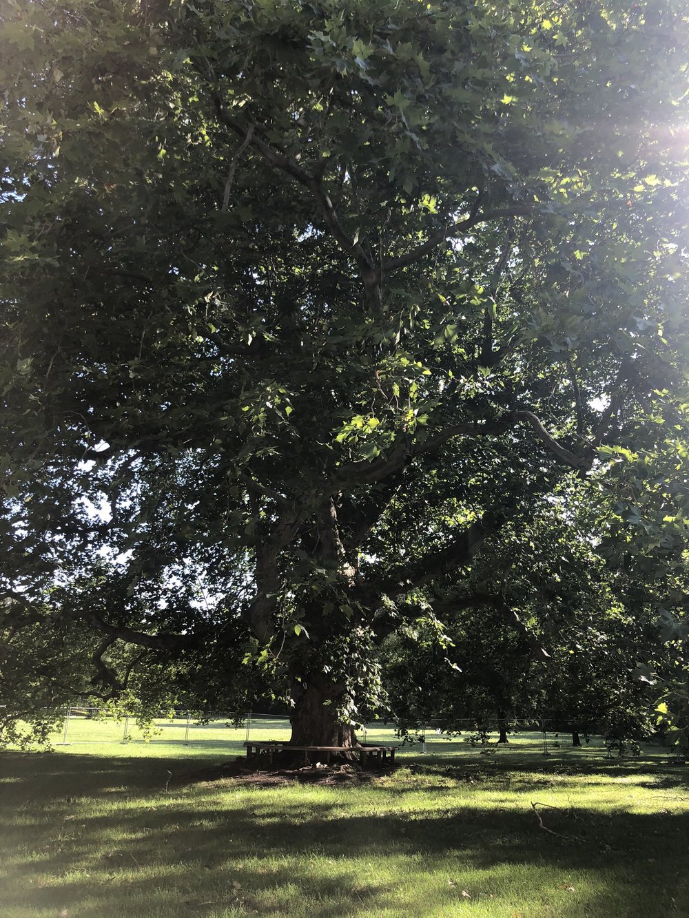 Informationen zur Platanenpflanzung: Zu Beginn der 1820er Jahre planten die Schüler*innen der Landesschule Pforta eine komplette Neugestaltung des Schulgartens. Bei dieser Planung wurde um das Jahr 1825 eine Platane gepflanzt. Die Platane soll heute mit ihren 40 Meter Kronendurchmesser der drittgrößte Baum Deutschlands sein. Der Stammumfang in 1,30 m Höhe betrage 7,22 m und die Gesamthöhe liege ungefähr bei 35,10 m (Quelle: https://www.stiftung-schulpforta.de/ & https://www.lokalkompass.de).