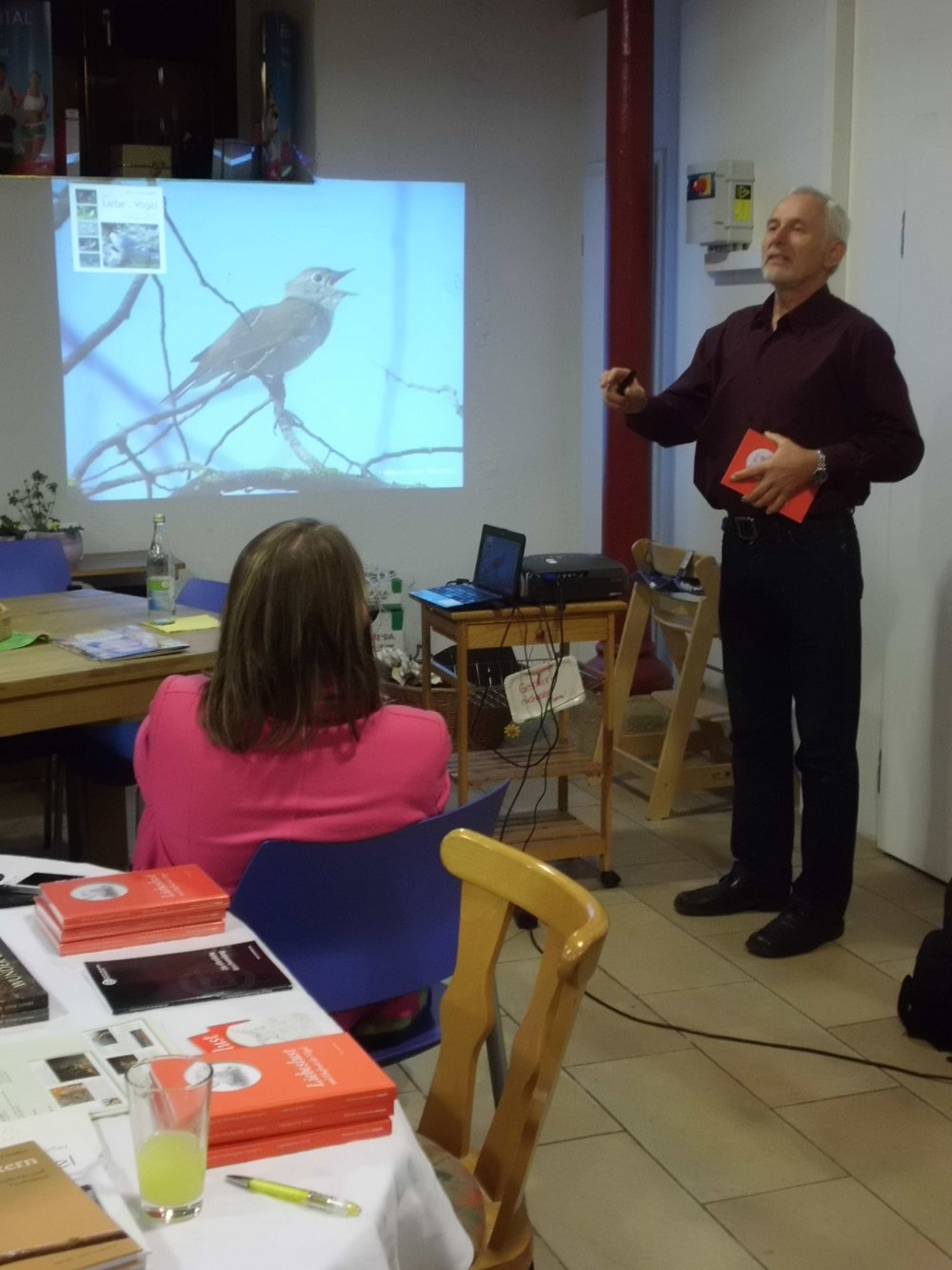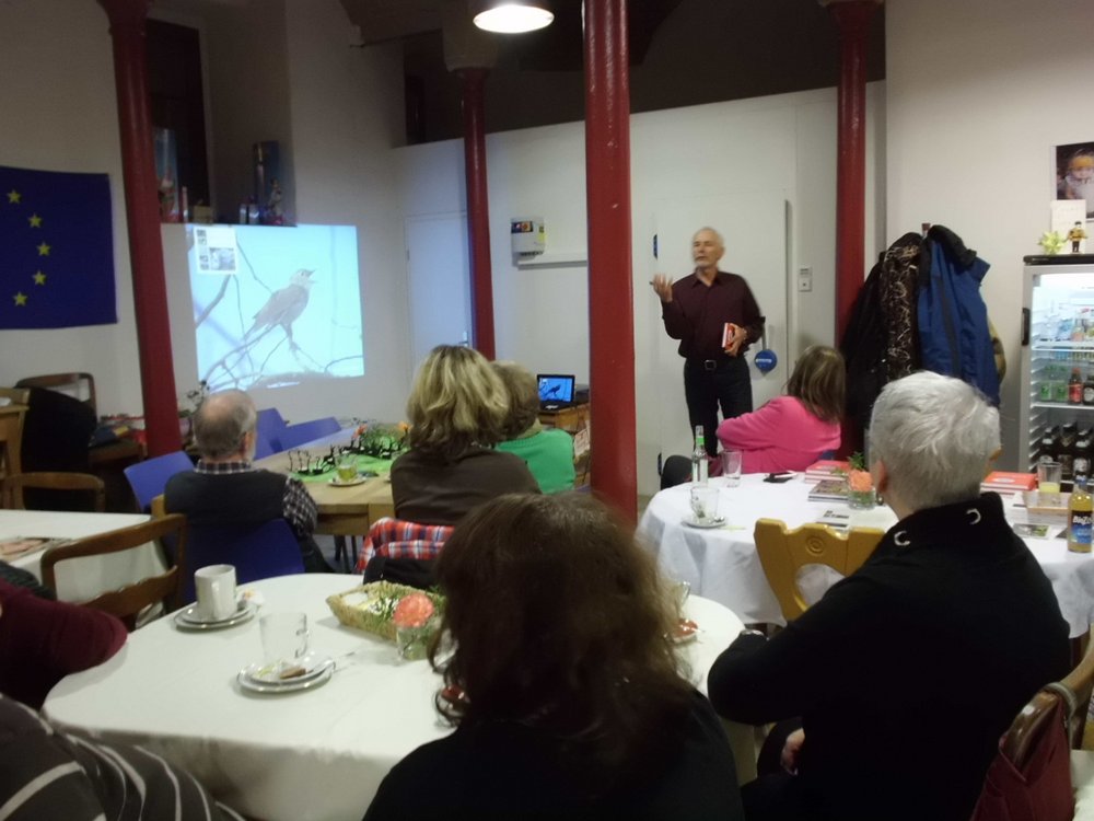 Die eine oder andere Vogelart auf den zauberhaften Nahaufnahmen könnte vom Publikum benannt werden und Beobachtungen aus dem eigenen Garten wurden fachkundig von Ernst Paul Dörfler eingeordnet bevor eine weitere Geschichte das Liebesleben der Vögel kommentierte.