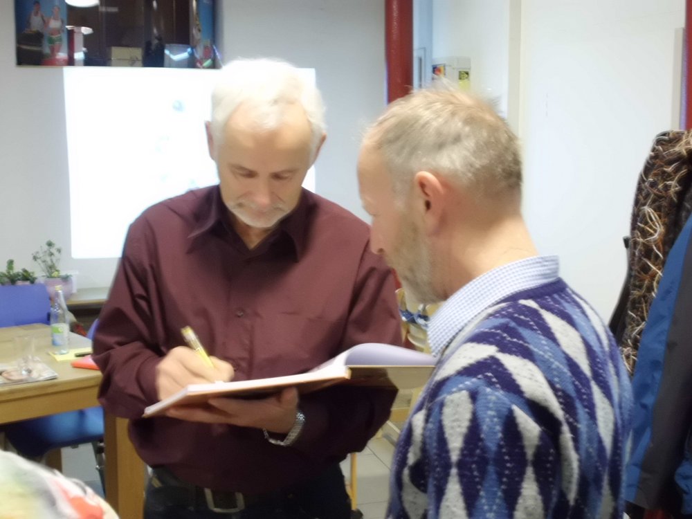 Der Büchertisch war am Ende leer und zahlreiche signierte Bücher werden wohl einige LiebhaberInnen finden. Ein Termin für Halle mit Ernst Paul Dörfler wird für das Frühjahr geplant.