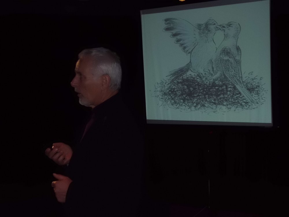 Prof. Dr. Claudia Dalbert und Dietmar Weihrich luden am 03. März ein zu einer Lesung mit Ernst Paul Dörfler, der 2010 auf Grund seines langjährigen Umweltengagements mit dem renommierten EuroNaturpreis ausgezeichnet wurde. Mitgebracht hatte der Zerbster Ökologen und Publizisten viele Exemplare des Buches „Liebeslust und Ehefrust der Vögel“ und Fotos welche über einen Beamer Einblicke in das Liebesleben der Vögel gewährte. So erfuhren die Gäste aus den Geschichten und den Erläuterungen dazwischen z.B. dass der vermählte Gatte bei der Nachtigall dann schweigt und leider nicht mehr zu hören ist. Viele Geschichten über den Flirt im Morgengrauen oder erst nach Mitternacht; über Verlobung, Saisonehe oder auch freier Liebe; rundeten den Abend ab. Weitere Ideen wie wir in der Stadt auf das Leben der Vögel aufmerksam machen können, wurden ausgetauscht und weitere Veranstaltungen sollen folgen. Informationen dann hier und im Newsletter.