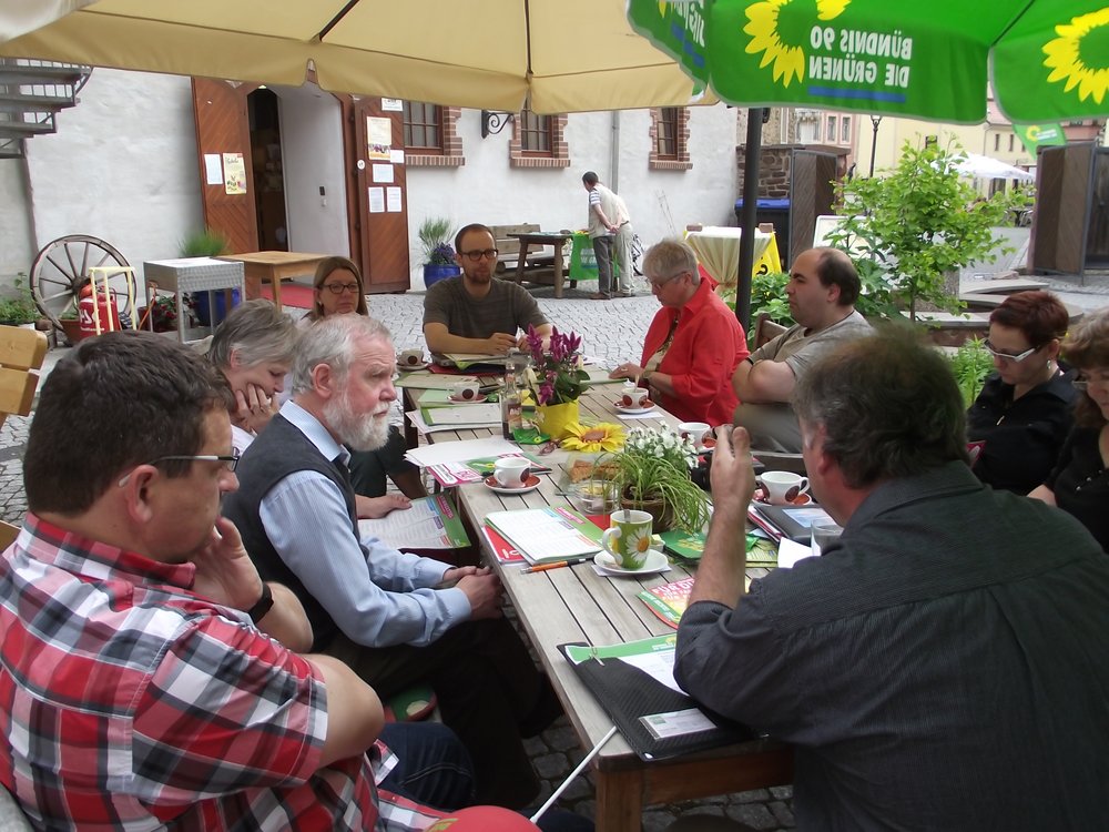 Nach einer kontroversen Debatte und Abstimmung mit dem Mitgliedern des Kreisverbandes Mansfeld-Südharz über die 9 Projekte welche in einer Regierungsbeteiligung als Erstes angepackt werden, folgte am Sonntag ein Sommerfest. Bei bestem Bufett gezaubert von Dagmar Edel vom Naturkost- & Regionalmarkt in Eisleben folgten viele Gespräche unter anderm über die Vorbereitung des Wahlkampfes mit Norbert Jung, dem grünen Direktkandidaten. Der Einladung von Claudia Dalbert und Kreisverband war auch die Bürgermeisterin Jutta Fischer gefolgt. Alle ließen sich vom einsetzenden Regen nicht von einem geselligen Nachmittag abhalten.