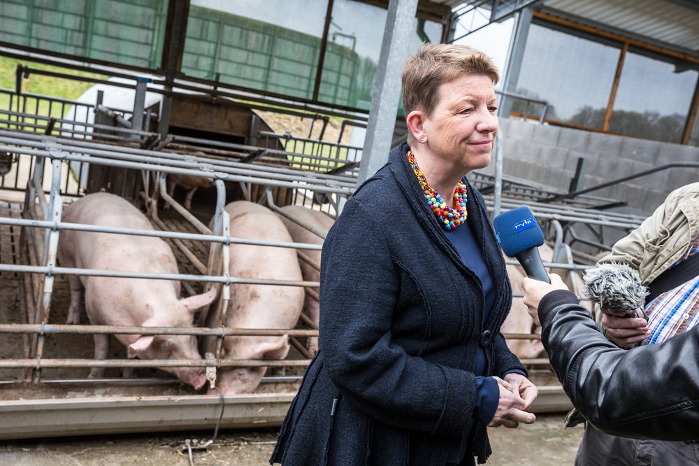 Nach dem Umbau des Stalls werden die Sauen in Iden jetzt nur noch 3-5 Tage fixiert, eher sie in die Gruppenhaltung kommen. Mit der Eröffnung will das Landwirtschaftsministerium mit gutem Beispiel voran gehen.