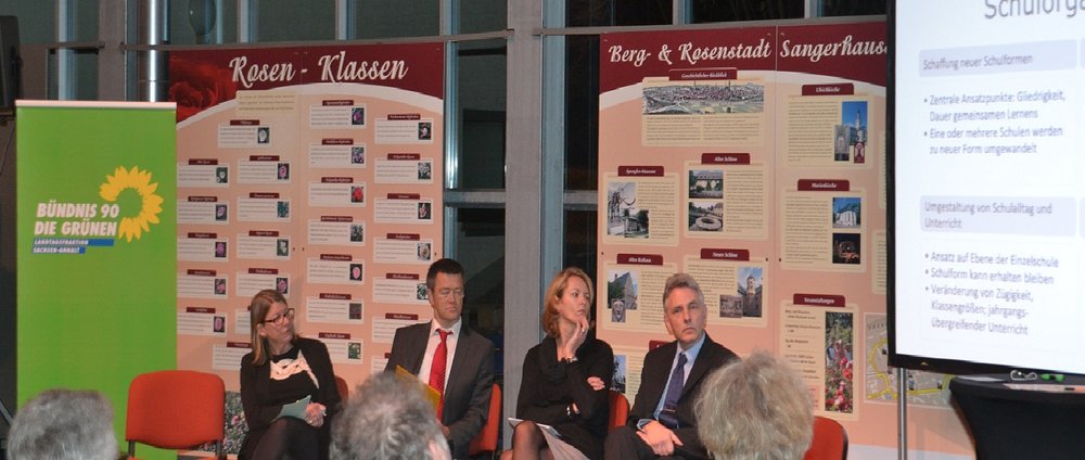 "Wir müssen Schulen völlig neu denken. Nur dann wird es uns gelingen, flächendeckend - auch im ländlichen Raum - ein qualitativ gutes Schulangebot zu haben." So fasst Claudia Dalbert die Podiumsdiskussion "Wie wollen wir in Zukunft leben? Schulbildung in Sachsen-Anhalt? Gestalten statt schließen!" zusammen. Über 30 Gäste diskutierten in Sangerhausen im Rosarium über Alternativen zur Ausdünnung des Schulangebots.