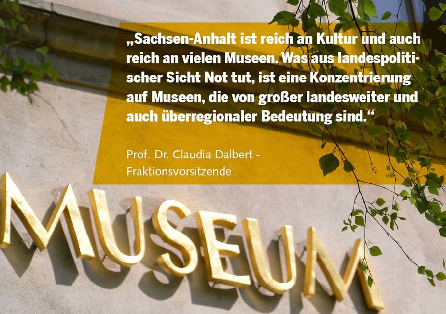 Sachsen-Anhalt ist ein Land reich an Kultur und auch reich an vielen Museen. Was aus landespolitischer Sicht Not tut, ist eine Konzentrierung auf Museen, die von großer landesweiter und auch überregionaler Bedeutung sind. Hier müssen wir richtig investieren, hier müssen wir klotzen und nicht kleckern. Die müssen wir bekannt machen, in den Mittelpunkt stellen.