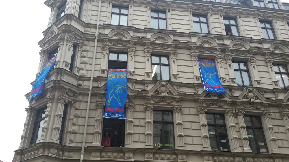 Die BÜNDNISGRÜNE Fraktionsvorsitzende im Landtag, Frau Prof. Dr. Claudia Dalbert, setzt gemeinsam mit der Leitenden Pfarrerin Carola Ritter von den Evangelischen Frauen in Mitteldeutschland und dem Landesverband der GEW am Internationalen Gedenktag „NEIN zu Gewalt an Frauen“ am 25. November ein Zeichen. Als Mieterinnen und Mieter des Hauses Kleiner Berlin 2 beteiligen sie sich an der Fahnenaktion „frei leben – ohne Gewalt“ von terre des femmes und hissen an der Ecke Sternstraße und Kleiner Berlin in Halle (Saale) an diesem Tag zwei Fahnen.